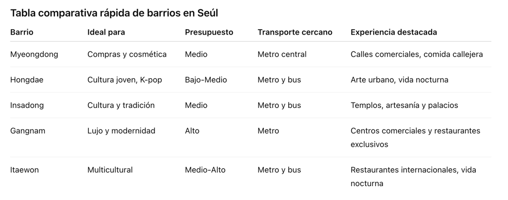 Si quieres, podemos ayudarte a elegir el alojamiento perfecto y planear tu ruta diaria en Seúl, optimizando tu tiempo y presupuesto. Suscríbete a nuestro boletín o contáctanos para recibir asesoría personalizada.